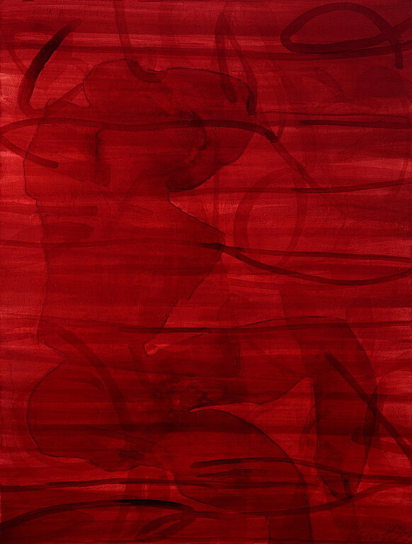 Ihre Malerei traf dann zu Beginn der 2000er mein Inneres. Nochmal später realisierte ich, dass ihre Zeichen und Schriften, die ihre Bilder erzählend unterstrichen, ihren Weg in meinen Tanz fanden. Es war eine schöne Entdeckung und ich arbeitete bewußter damit. Mein sowieso schon markantes Handspiel beim Tanzen erfuhr eine immer größere Dringlichkeit, die sich über Zartheit, aber auch Verkrampfungen äußerte. Jetzt schreibe ich bewußt Zeichen in die Luft, auch auf Böden oder Wände hinterlasse ich sie. Im Gegensatz zu Mona's Zeichen verschwinden meine im Moment ihres Entstehens.