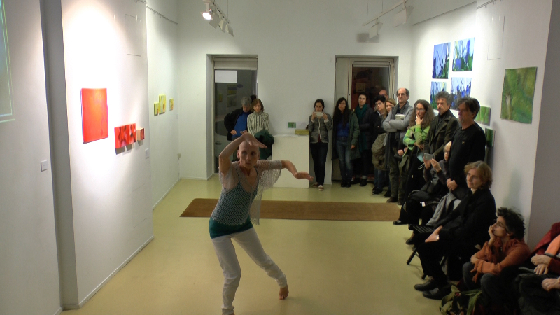 Am 26. November hatte ich das Glück mich tänzerisch in der gelungenen Ausstellung von Ebba Rohweder zu äußern. Mein Empfinden ließ sich durch die Farbigkeit und Sensibilität der Bilder leiten. Es kam zu sensiblen Begegnungen zwischen Körper, Malerei und Video, entstanden im Moment des Jetzt und der Stille.