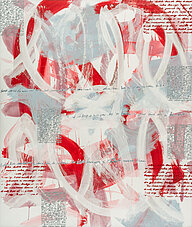Ihre Malerei traf dann zu Beginn der 2000er mein Inneres. Nochmal später realisierte ich, dass ihre Zeichen und Schriften, die ihre Bilder erzählend unterstrichen, ihren Weg in meinen Tanz fanden. Es war eine schöne Entdeckung und ich arbeitete bewußter damit. Mein sowieso schon markantes Handspiel beim Tanzen erfuhr eine immer größere Dringlichkeit, die sich über Zartheit, aber auch Verkrampfungen äußerte. Jetzt schreibe ich bewußt Zeichen in die Luft, auch auf Böden oder Wände hinterlasse ich sie. Im Gegensatz zu Mona's Zeichen verschwinden meine im Moment ihres Entstehens.