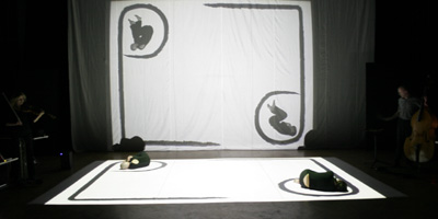 In der Kombination von Neuen Medien, bildnerischen und darstellenden Elementen werden Raum und Zeit qualitativ verbunden. Durch den Tanz entstehen aus starren Projektionen neue Zeichen, Tanzsequenzen werden durch Schichtung des digitalen Abbildes zu Symbolen verdichtet, Videosequenzen von getanzten Sandbildern relativieren die Flüchtigkeit. Bereits gespielte musikalische Passagen werden, ausgelöst durch die Bewegungen der Tänzerinnen, in verfremdeter Form reproduziert, die Zeitstruktur der Komposition wird durch Bewegung gebrochen.