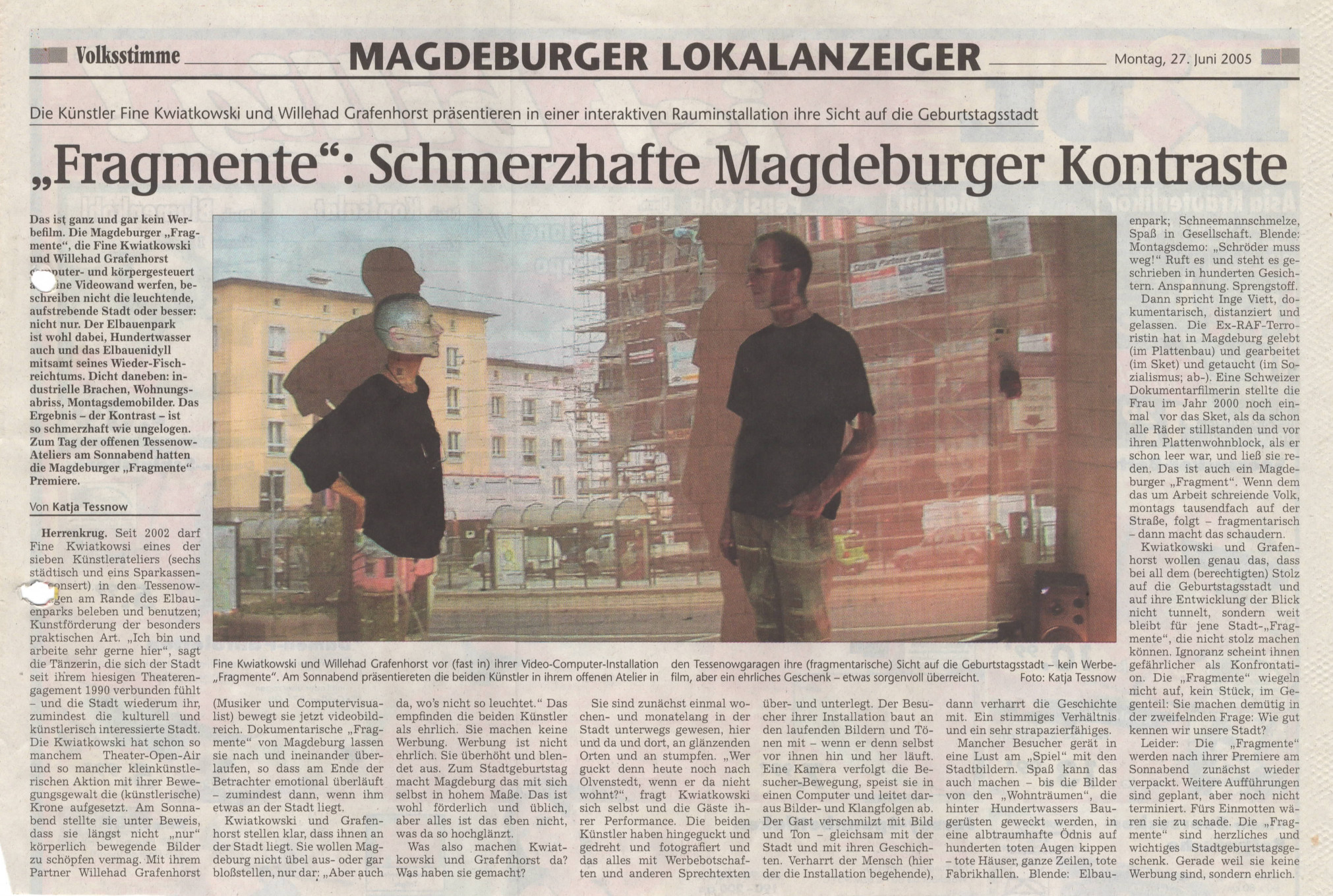 Beide nahmen die 1.200 Jahrfeier der Stadt Magdeburg als Anlass, ein Kunstprojekt zu erarbeiten, in dem Geschichtsfragmente der Stadt sinnlich erfahrbar an die Magdeburger Bevölkerung herangetragen wurden. Die Besucher nahmen aktiv am Geschehen teil, indem sie sich durch die visuelle Klanginstallation bewegten.