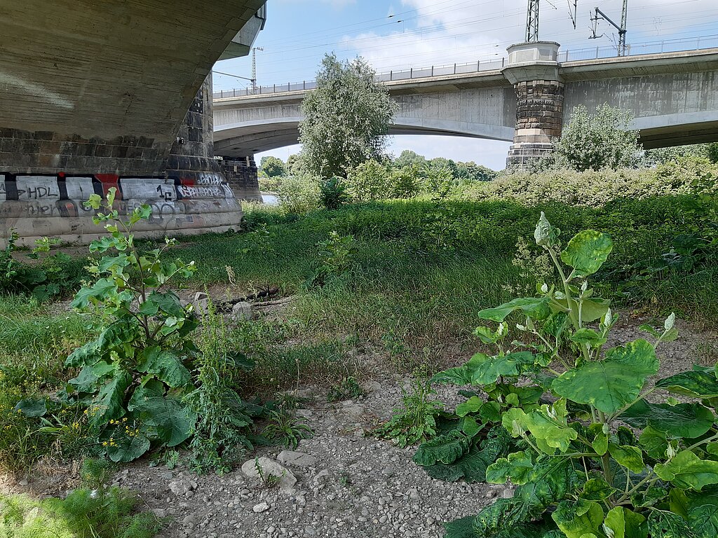 Innerhalb der Workshopzeit setzen wir uns mit drei, dicht beieinander liegenden Orten im FREIEN auseinander. Einem Park mit alten Buchen und Eichen, daneben fließend die Elbe mit ihren weiten Wiesen und ein Stück weiter eine vielbefahrende Brücke. Drei Orte in Sicht- und Hörweite, wie reagieren wir darauf?