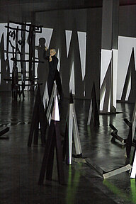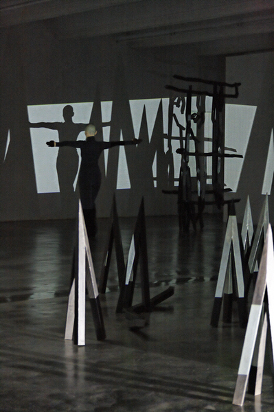 Die Gelegenheit bot sich in der Kunsthalle des Kunstvereins in Reutlingen. Ein interessanter Raum und die Vorgabe, innerhalb der Reutlinger Kulturnacht zwei Performances durchzuführen, brachte uns auf die Idee, neben den Ebenen Tanz und Musik eine dritte (Video)Ebene hinzuzufügen. Das Ergebnis war ein völlig neues Raumgefühl, eine neue/andere Sicht und Verbindung mit Schad's Skulpturen...