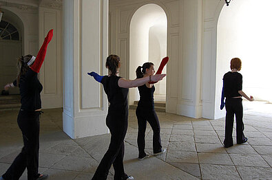 In einem interdisziplinären Workshop der Akademie Schloss Solitude und der Kunststiftung Baden-Würtemberg in der Zusammenarbeit mit Schülerinnen der Realschule Ostertag in Leonberg und 3 Künstler/innen, sollen die Künste Musik, Bild/Raum und Tanz eine enge Beziehung eingehen.
