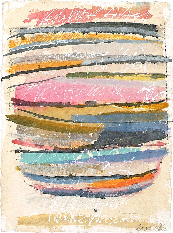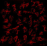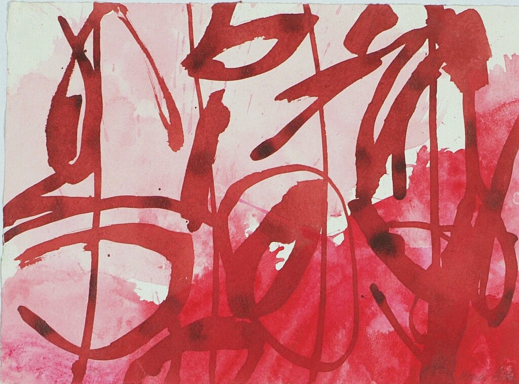 Ihre Malerei traf dann zu Beginn der 2000er mein Inneres. Nochmal später realisierte ich, dass ihre Zeichen und Schriften, die ihre Bilder erzählend unterstrichen, ihren Weg in meinen Tanz fanden. Es war eine schöne Entdeckung und ich arbeitete bewußter damit. Mein sowieso schon markantes Handspiel beim Tanzen erfuhr eine immer größere Dringlichkeit, die sich über Zartheit, aber auch Verkrampfungen äußerte. Jetzt schreibe ich bewußt Zeichen in die Luft, auch auf Böden oder Wände hinterlasse ich sie. Im Gegensatz zu Mona's Zeichen verschwinden meine im Moment ihres Entstehens.